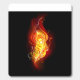 Bright peacock feather made of fire and flame on black background.