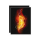 Bright peacock feather made of fire and flame on black background.