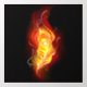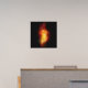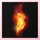 Bright peacock feather made of fire and flame on black background.