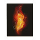 Bright peacock feather made of fire and flame on black background.