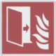Fire protection door and flame icon on red background.