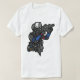This design would look fantastic on a white T-shirt, as the vibrant colors—black, grey, blue, and red—would stand out sharply against the clean, bright background. The detailed illustration of the tactical soldier would create a bold and eye-catching centerpiece.