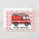 This bright red firetruck has a background of red hearts. The message reads"Be My Valentine". The text on can be customized. NOTE: Cards are left deliberately blank, on the back, so children can sign their name.