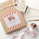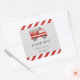 Square sticker for birthday favor with fire truck design and red color combination.