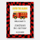 Retro Cute Sound the Alarm Fire Truck Wavy Checkered Birthday welcome board. Matching Items in our shop for a complete party theme.