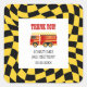 Fire Truck Black Yellow Checkered 3rd Birthday Square Sticker