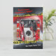 This unique thank you note features a real fire truck and fireman gear, against a smokey background.