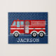Fire Truck Navy Blue Polka Dot Personalized Kids Jigsaw Puzzle