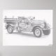 Fire truck pencil sketch large reprint poster