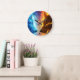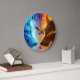 Two wolf stand off in the midst of the burning woods makes this wall clock a unique and fascinating addition to your decor.