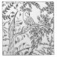 Firebird, bird, fairy, forest, fairy bird, exotic, creative, nature, trees, feather, cartoon, black, white , monochrome, leaves, trees