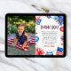 Show your appreciation with our "Little Miss Independent" 4th of July birthday thank you card! Perfect for wrapping up a spirited celebration, this card features bold red, white, and blue colors with playful fireworks and stars. The patriotic design captures the essence of Independence Day, making it a delightful way to thank your guests for their presence and gifts. Customize the card with your personal message to add a heartfelt touch.