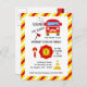 Fireman birthday party invitation with a simplistic black and white layout customizable to your event specifics. Graphics by PremiumClipart.