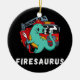 Firefighter Dinosaur Cute Fireman Truck Dino T Ceramic Ornament
