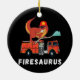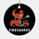 Firefighter Dinosaur Funny Fireman Truck T Rex Ceramic Ornament