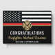 This design features a firemen's flag with black and white stripes, and a thin red line stripe as well. "Congratulations" and a fireman's badge sits above the name of the graduating firefighter. This design also works great for retiring firefighters, lieutenants, or chiefs. Celebrate in style!