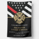 This design features a firemen's flag with black and white stripes, and a thin red line stripe as well. "Congratulations" and a fireman's badge sits above the name of the graduating firefighter. This design also works great for retiring firefighters, lieutenants, or chiefs. Celebrate in style!