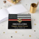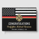 This design features a firemen's flag with black and white stripes, and a thin red line stripe as well. "Congratulations" and a fireman's badge sits above the name of the graduating firefighter. This design also works great for retiring firefighters, lieutenants, or chiefs. Celebrate in style!