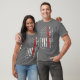 My 11 yo wore adult XL (5’7” 165#). The 8yo is small framed. She wore adult small and tied it in the back. Grandma wore adult large with long sleeve shirt underneath. Tall girl adult medium. Dark haired male adult large. Good quality dark Heather gray, Gildan brand shirt. -it was next up from basic choice and cost about $20 per shirt. Not too thick or thin. Washed and dried well, no major shrinkage. Not see-through. Can wear a bra under it fine. Screen print is just as shown and well done, front and back.
