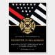 This design features a firemen's flag with black and white stripes, and a thin red line stripe as well. "Congratulations" and a fireman's badge sits above all of the party details for the retiring firefighter, lieutenant, or chief's retirement party.