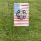 Flag bracket is super easy to assemble. There is a prong fork that goes into the ground. I dug a shallow hole to bury the prongs and still had enough height. Reinforced stitching on for the flag opening. Colors are true to the website. Mona Lisa's sign with the text is easy to read, the text is clear and not blurry.