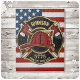 Firefighter NAME Fireman Fire Department USA Flag design - Emblem with Red Helmet and Axe. Customize with your Name, Station/Dept Number and location.