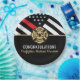 This design features a firemen's flag with black and white stripes, and a thin red line stripe as well. "Congratulations" and a fireman's badge sits above the name of the graduating firefighter. This design also works great for retiring firefighters, lieutenants, or chiefs. Celebrate in style!