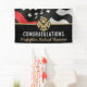 This design features a firemen's flag with black and white stripes, and a thin red line stripe as well. "Congratulations" and a fireman's badge sits above the name of the graduating firefighter. This design also works great for retiring firefighters, lieutenants, or chiefs. Celebrate in style!