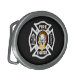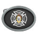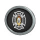 Firefighter flaming skull sets flames against fire dept maltese cross logo symbol of firefighting and tough enough to get the job done.