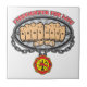 Firefighter for Life features two clenched fists holding chain with a firefighter badge on the end! Brothers text is tattooed across the hands referring to the brotherhood of firefighters. Firefighter for Life text across the top, great gift for firefighters!