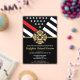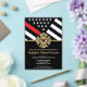 This graduation party invitation features a firemen's flag with black and white stripes, and a thin red line stripe as well. A fireman's badge sits above all of the party details for the graduating firefighter. This party invitation also works great for a retiring firefighter, lieutenant, or chief's retirement party.