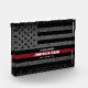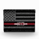 Simple and stylish, this design is the perfect way to honor a fallen firefighter who dedicated their time to serve and protect the community. The design features a grunge American flag with a single red thin line (stripe). All text is customizable to fit your "In Loving Memory" needs for the fallen firefighter.