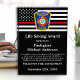 Celebrate and show your appreciation to an outstanding Firefighter with this Thin Red Line Firefighter Life Saving Award - American flag design in Firefighter Flag colors , modern black red design with custom fire department logo. Personalize this firefighter award with fireman name, text with fire department name, logo and community, and date of issue. Perfect of firefighter retirement awards, fire service awards, and firemen recognition and appreciation. COPYRIGHT © 2020 Judy Burrows, Black Dog Art - All Rights Reserved. Firefighter Life Saving Department Custom Logo Acrylic Award