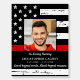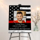 Honor your beloved firefighter and with this Thin Red Line Firefighter Memorial Photo Funeral sign. Personalize this firefighter funeral sign with your firemans photo, name & and dates. Quote: "In Loving Memory". This thin red line firefighter flag funeral sign will be a treasured keepsake to honor a fallen firefighter or fireman. COPYRIGHT © 2020 Judy Burrows, Black Dog Art - All Rights Reserved. Firefighter Memorial In Loving Memory Funeral Foam Board