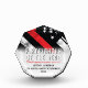 This design features a firefighter flag with black and white stripes, and a thin red line stripe as well. This award is great for showing appreciation to a firefighter, lieutenant, captain, or chief for their service and becoming firefighter of the year.