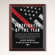 This design features a firefighter flag with black and white stripes, and a thin red line stripe as well. This award is great for showing appreciation to a firefighter, lieutenant, captain, or chief for their service and becoming firefighter of the year.
