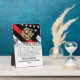 This design features a firefighter flag with black and white stripes, and a thin red line stripe as well. This award is great for showing appreciation to a firefighter, lieutenant, captain, or chief for their service and becoming firefighter of the year.