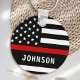Personalized Thin Red Line Keychain - American flag in Firefighter Flag colors, modern black red design . Personalize with firefighter name, or fire department. This personalized firefighter keychain is perfect for fire departments, fire service,or as a memorial keepsake. COPYRIGHT © 2020 Judy Burrows, Black Dog Art - All Rights Reserved. Firefighter Personalized Modern Thin Red Line keychain