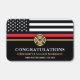 This design features a firemen's flag with black and white stripes, and a thin red line stripe as well. "Congratulations" and a fireman's badge sits above the name of the graduating firefighter. This design also works great for retiring firefighters, lieutenants, or chiefs. Celebrate in style!