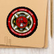 Fire Department ADD NAME Fireman Firefighter Badge design - Emblem with Helmet and Axe. Customize with your Name, Station/Dept Number and location.