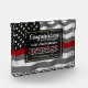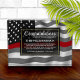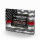 Classic thin red line firefighter flag in the background of this beautiful retirement keepsake. Be sure to edit all the text fields to make it 100% personalized.