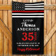 Happy Retirement! Add the finishing touch to your firefighter retirement party with these thin red line firefighter retirement banners and party supplies. USA American flag design in Firefighter Flag colors, modern black and red design. This firefighter retirement collection will be a favorite. Personalize with fireman name, rank, years of service,fire department, message and retired date. See our thin red line collection for matching firefighter retirement invitations, fireman gifts, party favors, and supplies. COPYRIGHT © 2020 Judy Burrows, Black Dog Art - All Rights Reserved. Firefighter Retirement Anniversary Thin Red Line Banner