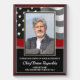 This design features the thin red line firefighter wavy flag with photo template center, and text template you can personalize. This photo template makes a lovely keepsake of the event.