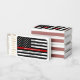 Happy Retirement! Thin Red Line Firefighter Retirement Matchboxes - USA American flag design in Firefighter Flag colors, modern black red design . This personalized firefighter matches is perfect to celebrate your retired fireman, firefighter retirement party favors , fire service retirement gifts, firefighter anniversary gift for years of service. Personalize these firefighter retirement matchboxes with fireman rank, name, years of service and retirement date. COPYRIGHT © 2020 Judy Burrows, Black Dog Art - All Rights Reserved. Firefighter Retirement Custom Thin Red Line Matchboxes