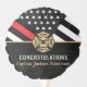 This design features a firemen's flag with black and white stripes, and a thin red line stripe as well. "Congratulations" and a fireman's badge sits above the name of the graduating or retiring firefighter, lieutenant, or chief. Celebrate in style!