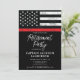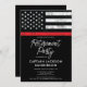 Celebrate a dedicated firefighter's retirement with this customizable Firefighter Retirement Party Invitation! This fun and stylish invitation features a striking Thin Red Line firefighter flag at the top, symbolizing honor and respect for their years of service. Personalize it with the retiree's name and party details. Perfect for family, friends, and colleagues to gather and commemorate this special milestone. Make your firefighter retirement party unforgettable with this unique and memorable invitation!