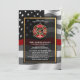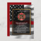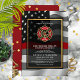 Classy and elegant firefighter retirement party invitations you can customize for your upcoming celebration. This design features the thin red line firefighter flag with an overlay with faux gold foil border, and a coordinating gold border metallic maltese cross emblem for your city fire department.