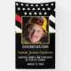 This design features a firemen's flag with black and white stripes, and a thin red line stripe as well. "Congratulations" and a fireman's badge sits above the name of the graduating or retiring firefighter, lieutenant, or chief. Celebrate in style! Customize even further with a photo of the retiring firefighter.