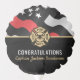 This design features a firemen's flag with black and white stripes, and a thin red line stripe as well. "Congratulations" and a fireman's badge sits above the name of the graduating or retiring firefighter, lieutenant, or chief. Celebrate in style!