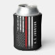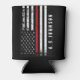 A custom name distressed style firefighter styled American flag can cooler. The thin red line running across the center is representative of firefighter professionals. Follow the directions in the sidebar to add your name and to have it look perfect underneath the flag.